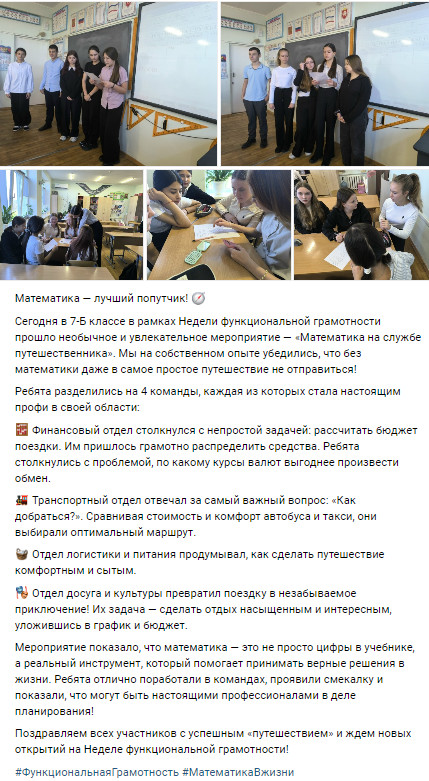 Неделя функциональной грамотности стала не просто набором мероприятий, а важным шагом в развитии нашей школы. Мы еще раз доказали, что образование – это не только оценки в дневнике, но и формирование компетенций, которые помогут нашим ученикам быть успешными, грамотными и счастливыми людьми в любой сфере жизни.